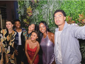 Grant Hall (rear, left) and his Grown’ish co-stars taking a behind the scenes selfie.