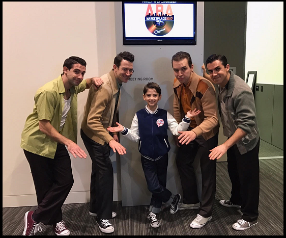 We’re not on together. We alternate shows, but we both have to be there for all eight shows even when we are not on just in case one of us gets sick mid show, or something bad like that. We sometimes have to go to put-in rehearsals. Also, when I did an event in Cleveland I had to rehearse new staging and choreography with The Jersey Boys. Other than that, besides A Bronx Tale sending us to a vocal coach every other week, I haven’t had any additional rehearsals. [Put-in rehearsals – The day before — or sometimes even the day of — the new actor’s first performance is a final “put-in” rehearsal, in which the actor goes through the entire role, in order, in costume, with all the cast members and all of the tech elements that affect the role. – Playbill.]